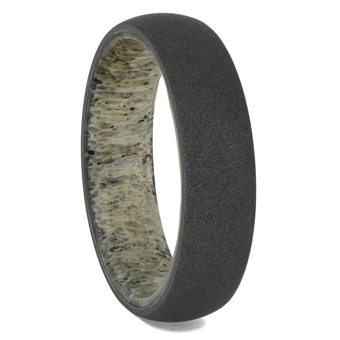 Sandblasted Titanium Ring with Deer Antler Sleeve
