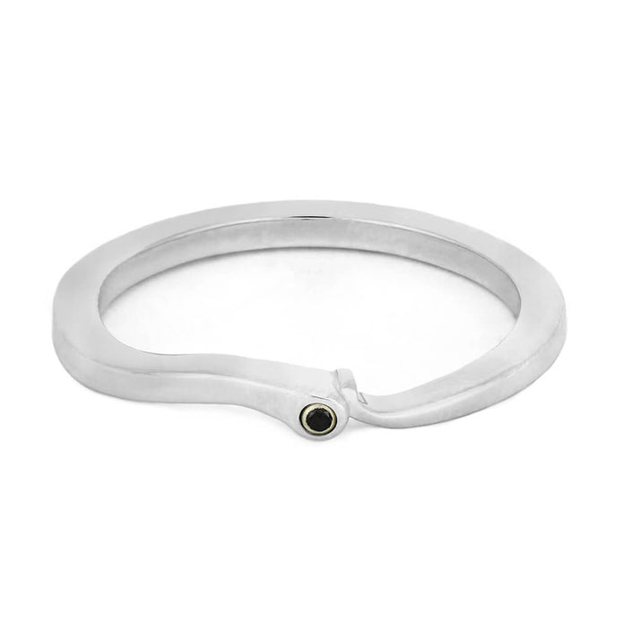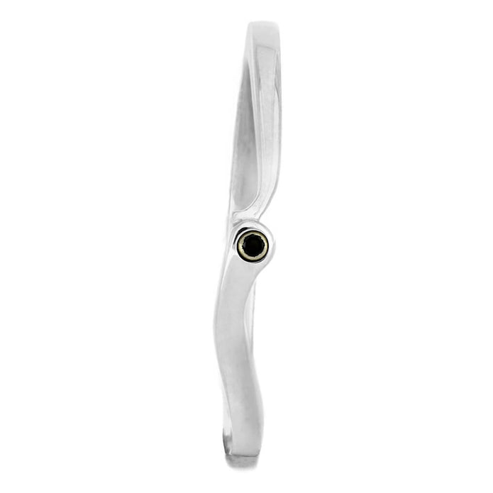 A single black diamond is bezel set in a circle of metal, adding a bit of flair to this shadow band. A simple wedding band allows your engagement ring to be the focus. Get this wedding band customized so that it fits perfectly against your engagement ring (you can change the stone too, if desired). This band mates perfectly with our tension set engagement ring design as shown in the CAD image.