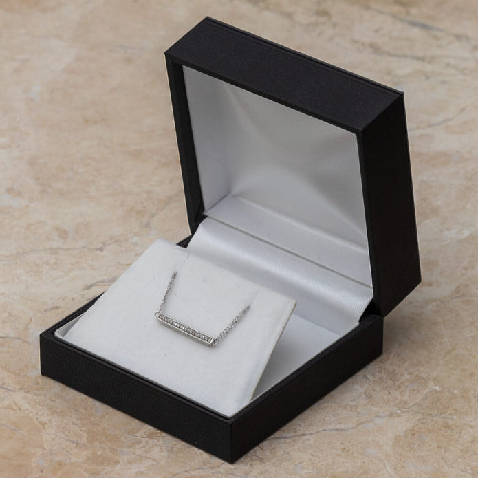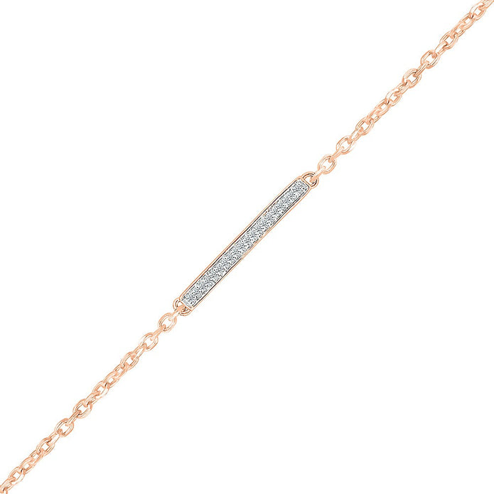 Set the bar higher with this diamond bracelet. This unique diamond jewelry features a beautifully crafted row of diamonds that are linked by a chain rope. A great minimalist look for any occasion, this diamond bar bracelet will become a classic in no time. Available in sterling silver or gold.