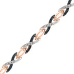 Present her with a bracelet that will remind her of your hugs and kisses. This design features "X"-shaped links that are adorned with alternating black and white diamonds. Open oval links connect the alluring kisses links, creating a look that she is sure to love every time she glances down. This romantic bracelet closes with a claw clasp.