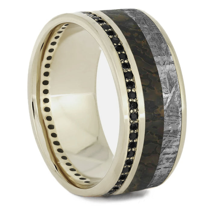 Black Diamond Eternity Wedding Band with Dinosaur Bone & Meteorite