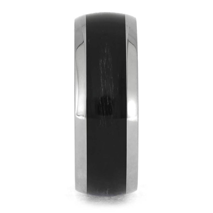 May your aim always be true with this bowstring wedding band! This custom ring is crafted with a black bow string in rugged titanium. The sturdy combo of materials shows off your passion for archery in a strong and durable fashion. Send us your own bowstring to make your custom ring even more unique!