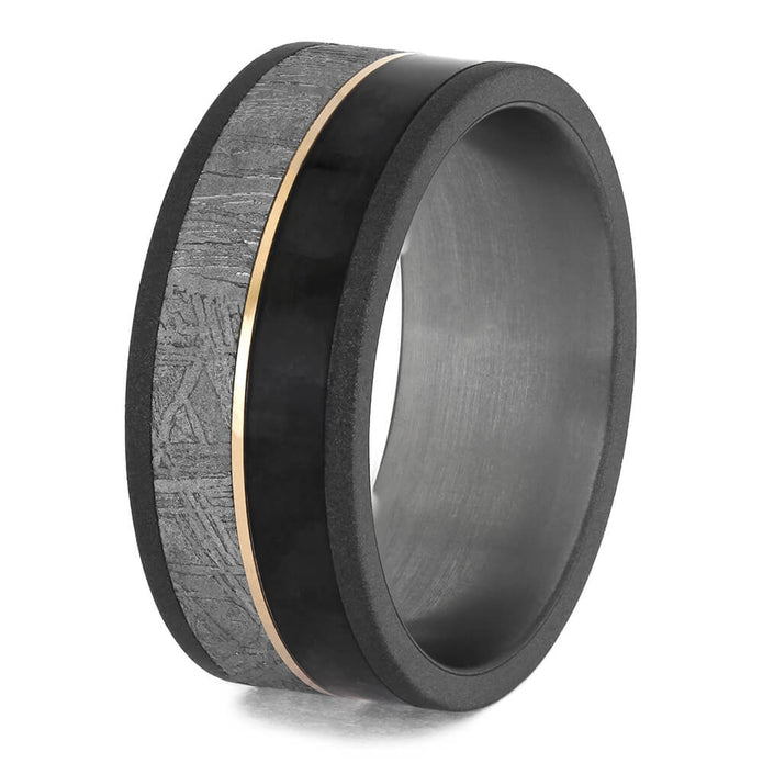 Carbon Fiber & Meteorite Ring With Sandblasted Titanium