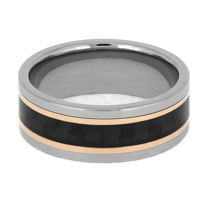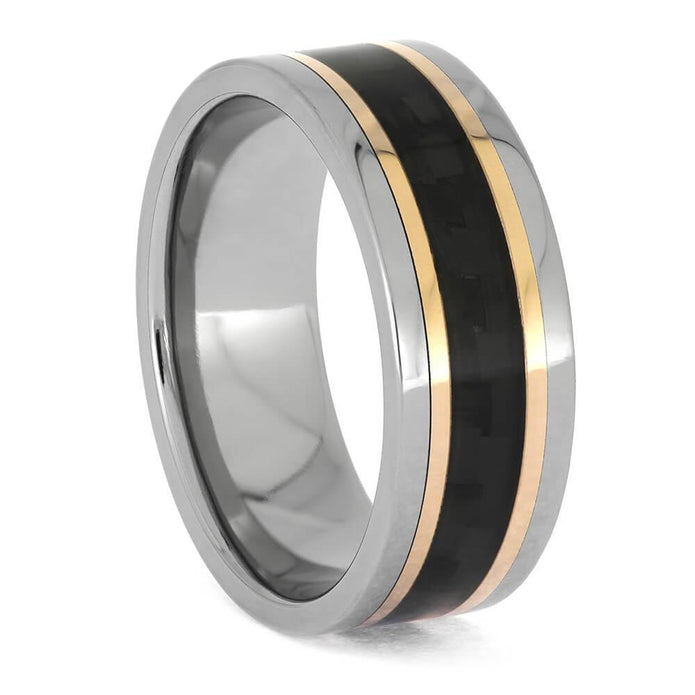 Carbon Fiber Ring with Rose Gold Pinstripes in Titanium