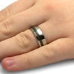 Reel in your love with this dark green fishing line wedding band. Our fishing line rings are made in a sleek and sturdy titanium, able to hold up against the strongest of catches. This is exactly what that fishing enthusiast in your life is looking for.