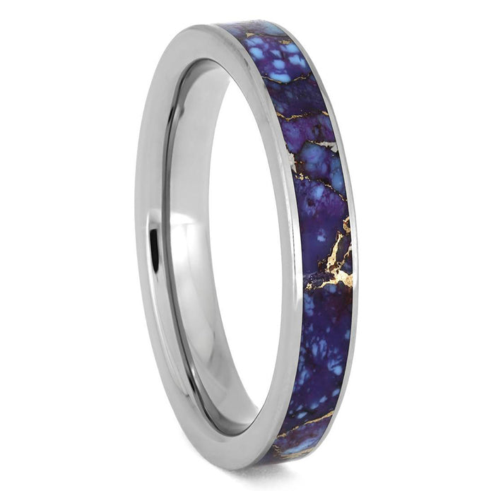 Add a brilliant, memorable accent to your style with this lava mosaic turquoise ring! Turquoise blended with violet pigments and bright metal strands give this titanium ring an organic, futuristic look.