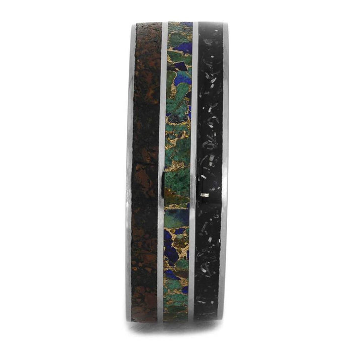 Materials in Tungsten Memorial Ring With Dino, Stardust and Turquoise