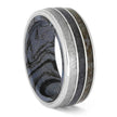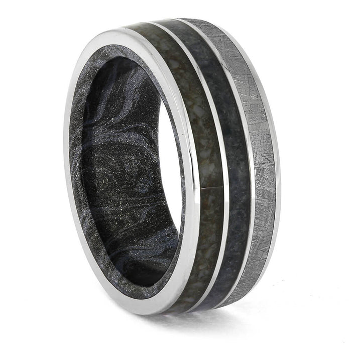 Meteorite Ring with Blue Hues and a Mokume Sleeve