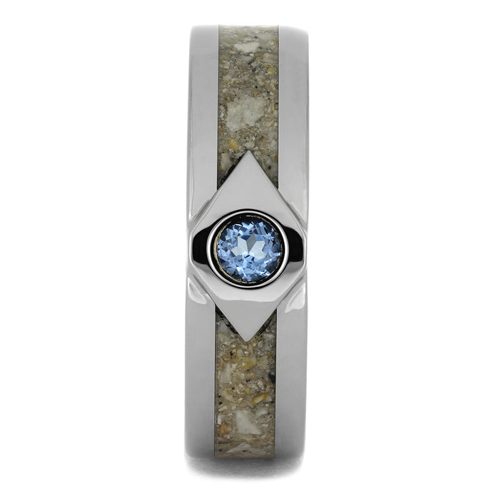 Memorialize your beloved with a tasteful piece of memorial jewelry. This memorial ring design features a bezel set stone, shown featuring a blue topaz.