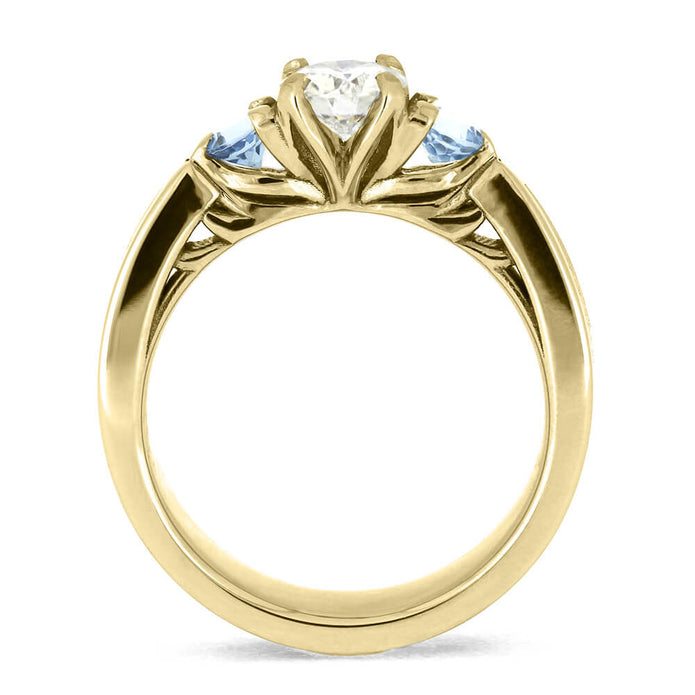Materials in Topaz and Moissanite Engagement Ring with Goldstone Inlay