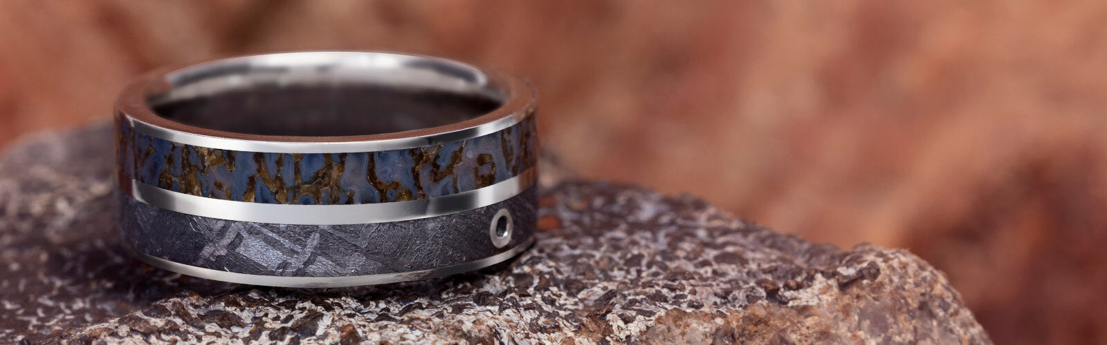 Dinosaur bone’s unique pattern and color alone are sure to catch eyes. Paired with platinum, nobody can resist this stunning and luxurious dinosaur bone rings. Platinum’s shine and durability perfectly compliment dinosaur bone. For those that are concerned with metal allergies, platinum is a popular choice because of its hypoallergenic properties.