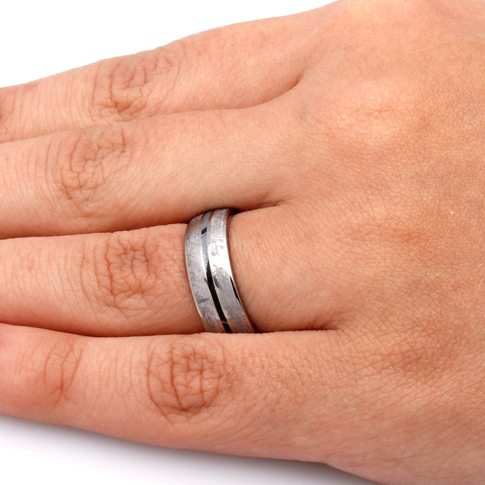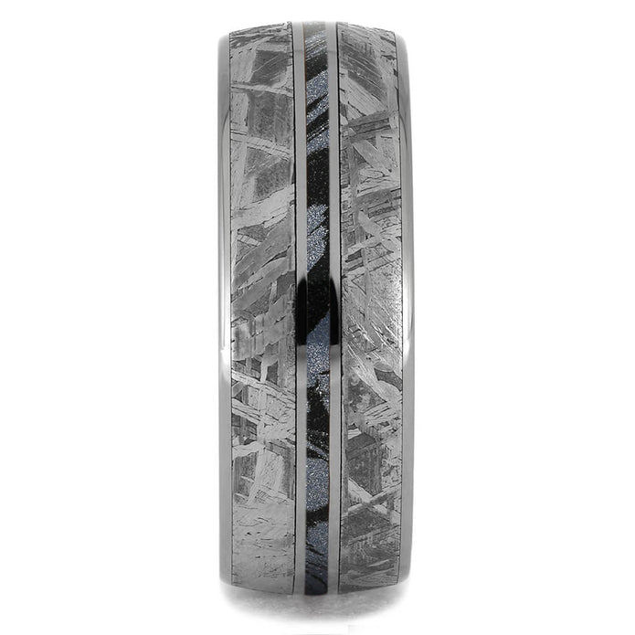 Materials in Blue Meteorite Ring, Men's Wedding Band With Mokume Gane