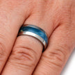 Blue Box Elder Burl Wood Ring, Titanium Wedding Band