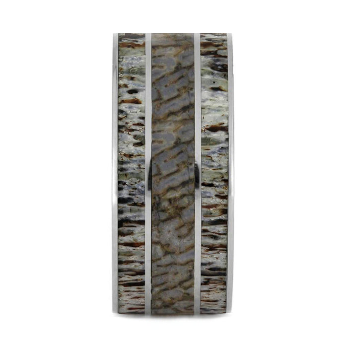Thick Wedding Band With Dinosaur Bone And Deer Antler
