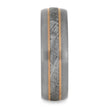 Durable titanium and luxurious 14k rose gold surrounds a real piece of the stars on this handmade meteorite ring. The angular patterns in the Gibeon meteorite inlay complement the smooth matte finish of the titanium and rose gold.