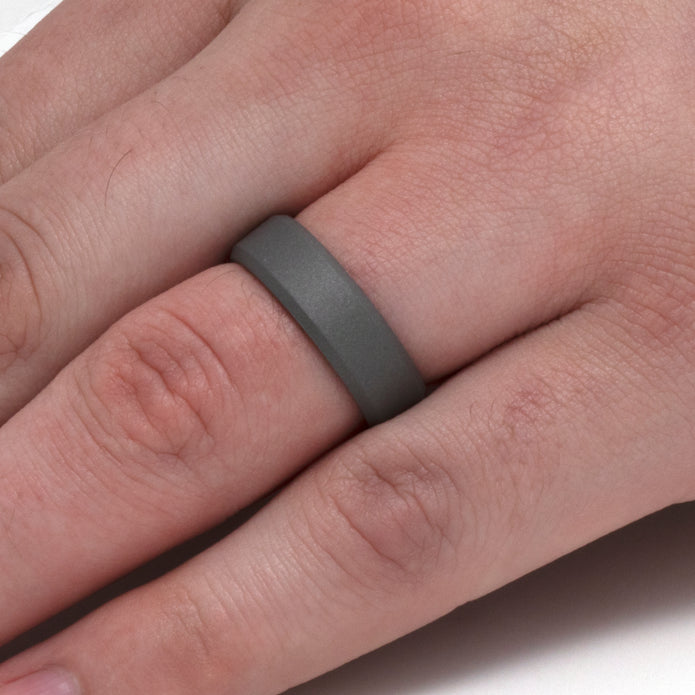 Simple Titanium Wedding Band With Sandblasted Finish And Beveled Edges