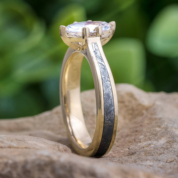 Marquise Engagement Ring In Polished Gold With Meteorite