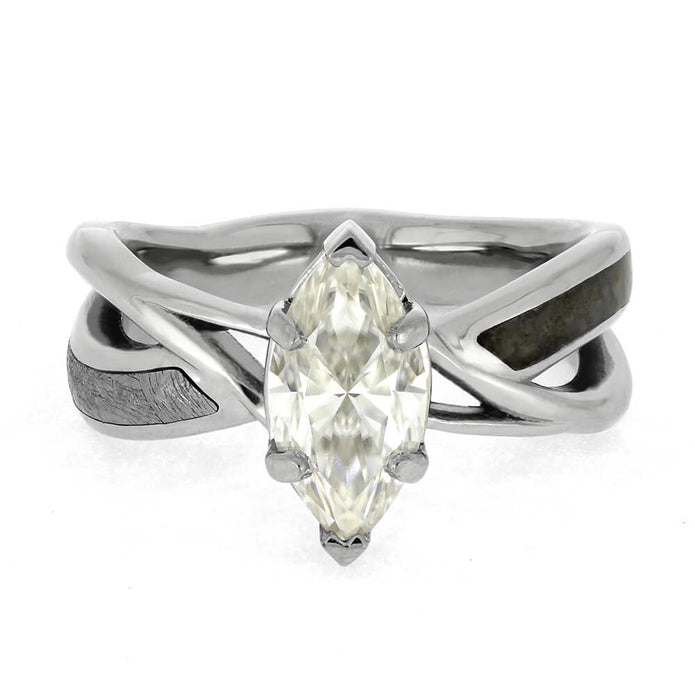 Materials in Meteorite & Platinum Engagement Ring With Twist Design