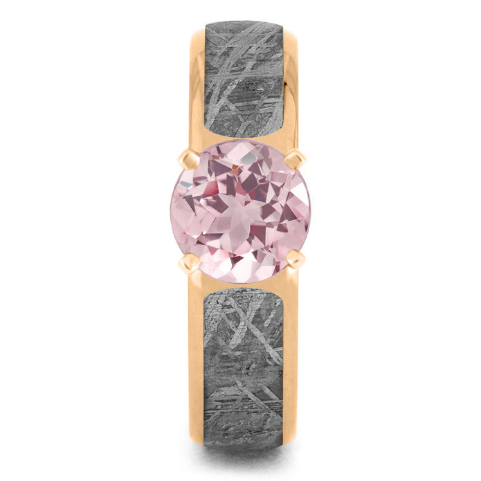 Morganite Solitaire Engagement Ring With Meteorite Inlay