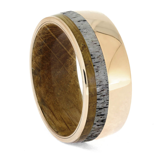 Rose Gold Men's Band With Antler & Whiskey Barrel Oak