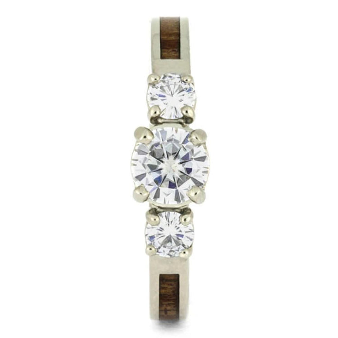 Three Stone Engagement Ring With Wood Inlay
