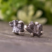These tiny earrings are small, but spectacular. Featuring authentic meteorite, the nuggets sit tightly in a sterling silver setting.