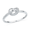 Sparkling diamonds accent this popular knot style ring. The knot represents eternity, your steadfast love, and your commitment. A perfect birthday or everyday gift for the one you who holds your heart. She will love the 0.08 carat total weight of diamonds and the very shiny polished band. This dainty, diamond ring is available in sterling silver or white gold.