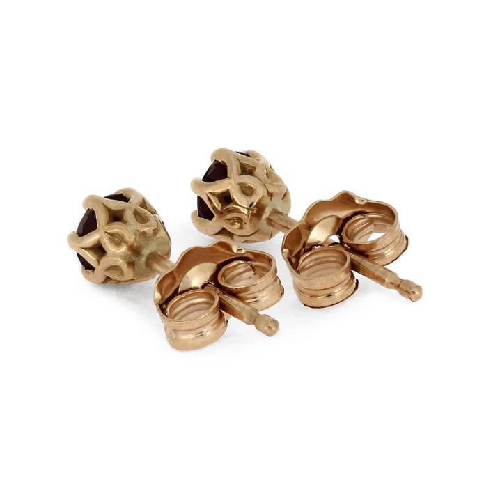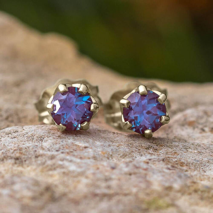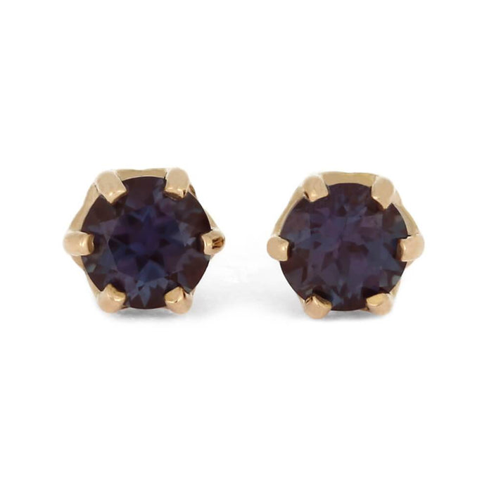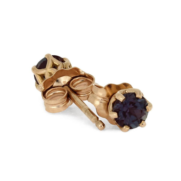 Polished Gold Stud Earrings with Alexandrite Gemstones