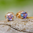 These June birthstone earrings are a great anniversary gift, with Alexandrite stones set in 14k gold. The simple design in these rose gold earrings allows the colorful stones to be the focus. Surprise your special someone with these handmade stud earrings!