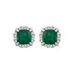 Lab-Grown Emerald & Natural Diamond Halo Stud Earrings