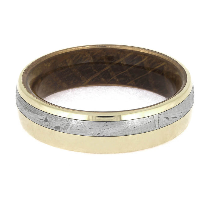 Solid Gold Ring with Meteorite & Whiskey Barrel Wood