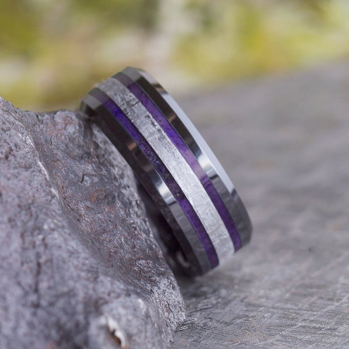 Materials in Purple Men's Wedding Band With Wood & Meteorite