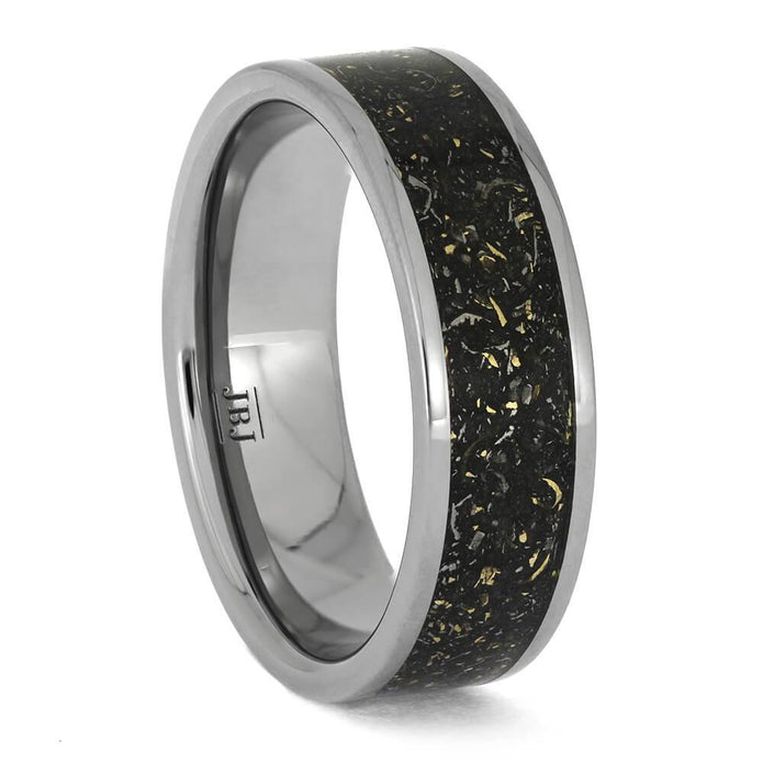 Black Stardust Wedding Band with Gold Flakes