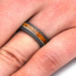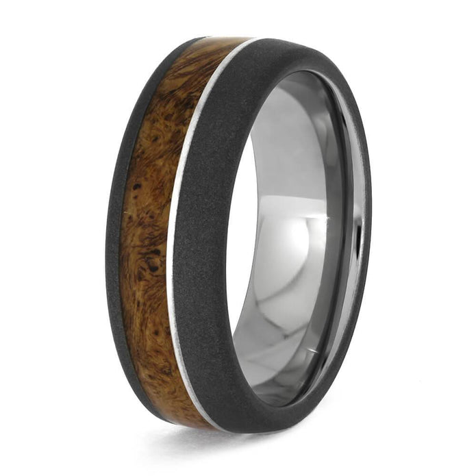 Cherry Burl Wood Wedding Band with Sandblasted Titanium