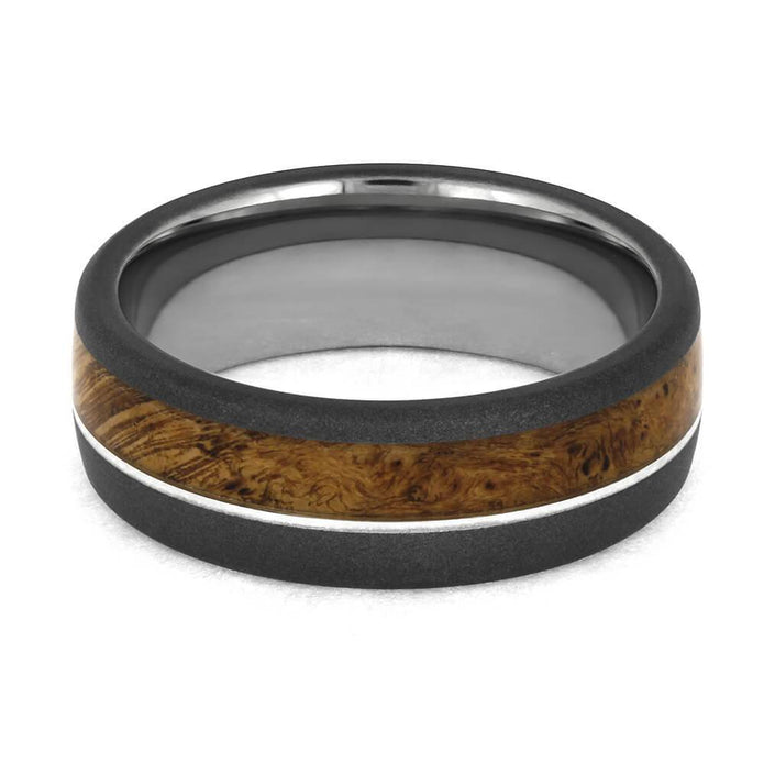 Materials in Cherry Burl Wood Wedding Band with Sandblasted Titanium