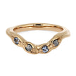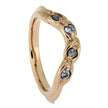 This women's wedding band has a very unique leaf design accented with meteorite and aquamarine. Customize it to feature a different stone of combination of stones, if desired. View or purchase the entire set here