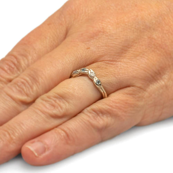 Materials in Custom Wedding Band with Gemstone Accented Leaf Design