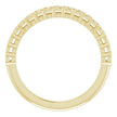 A beautiful row of channel set, sparkling diamonds is showcased in this anniversary or wedding band. Or, opt to add it to your collection of stackable rings.