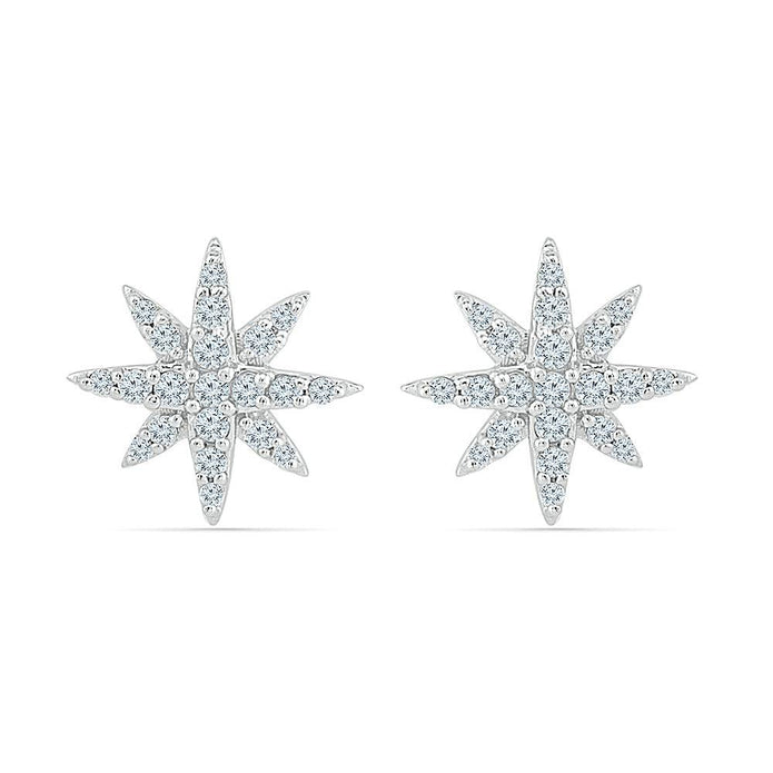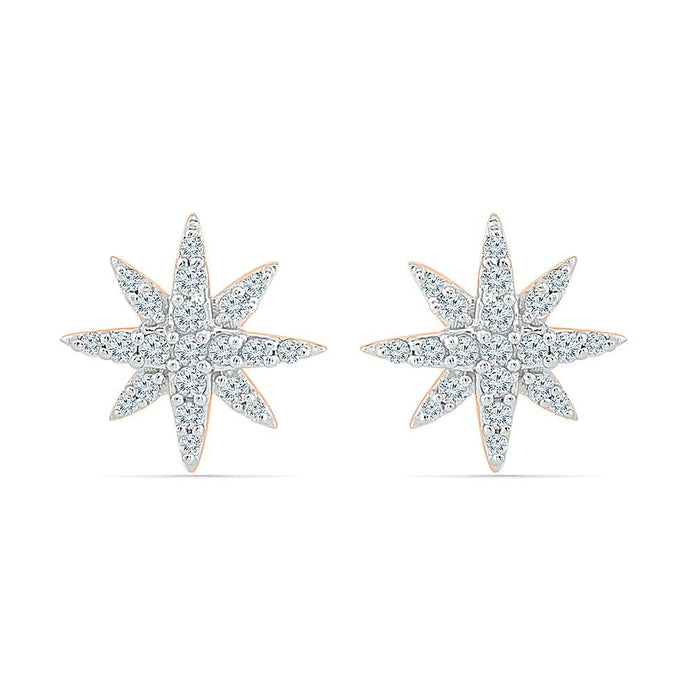 Sparkling stars, these diamond cluster earrings are sure to dazzle her. Order this pair of starburst stud earrings in sterling silver or gold (your preference of rose, white or yellow).