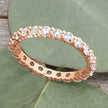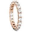 Want a wedding band that shines from every side? This is the one for you. Shimmering 3 mm round-cut diamonds are set in one after another, circling around the entire wedding band. This 14k rose gold women's wedding band is sure to catch the attention of anyone.