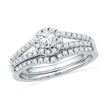 Your love will last the test of time, and so will this stunning halo engagement ring set. A slightly curved diamond wedding band seamlessly accompanies the diamond engagement ring. A diamond accented split shank emphasizes the round halo setting for the most romantic of looks that she is sure to love for lifetime. This wedding ring set glistens with 1/2 ct. t.w. of diamonds.