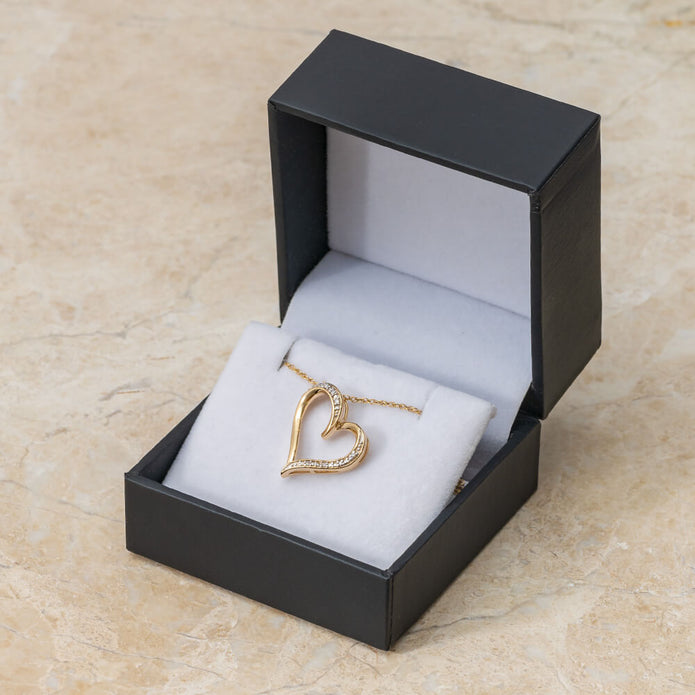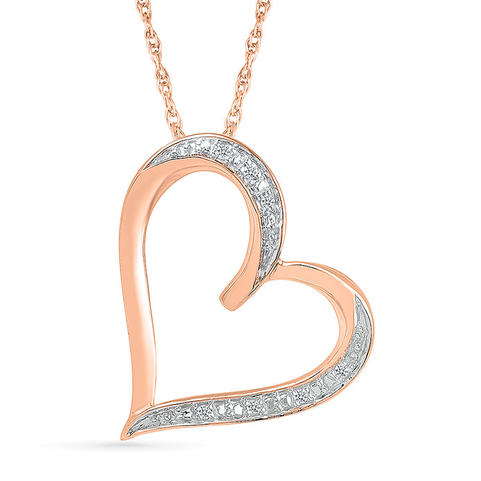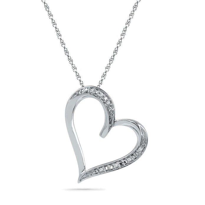 Present her with the most symbolic gift of love. This diamond tilted heart pendant necklace features an open heart pendant that is crafted out of silver or gold, whichever you prefer best, and is adorned with diamond accents. The look of love will be upon her face every time she glances down.
