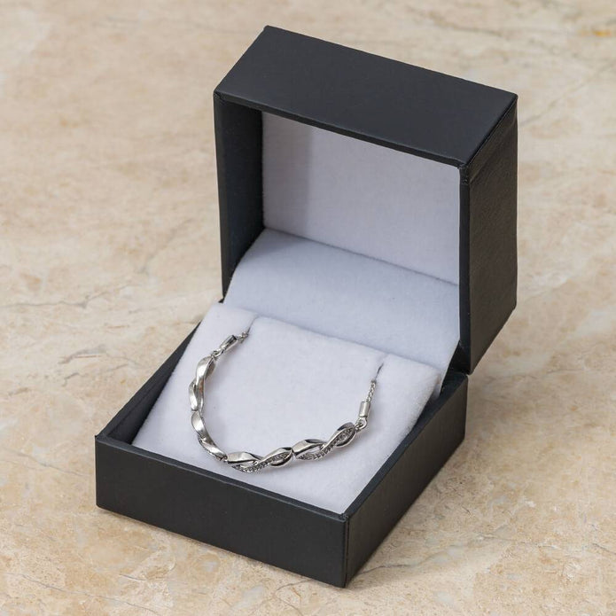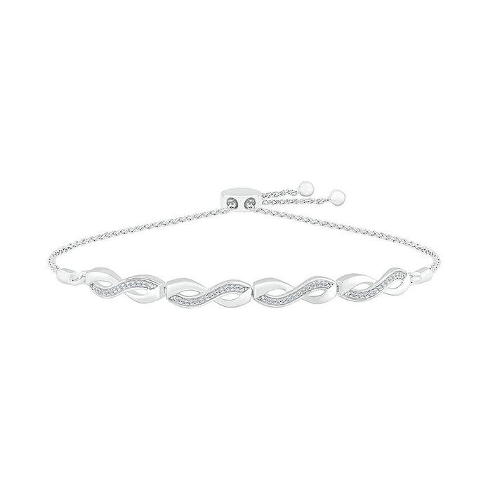 Show your love with this infinity bolo bracelet! Crafted in your choice of sterling silver or gold, this adjustable bolo bracelet is sure to be the perfect fit and shows off a glamorous row of glistening diamonds in four infinity arrangements.