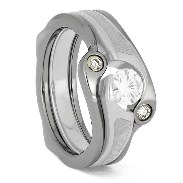 Need a matching wedding band? Our Gibeon Meteorite Engagement Ring With Tension Setting (SKU 2275) is crafted to perfectly pair with this design.