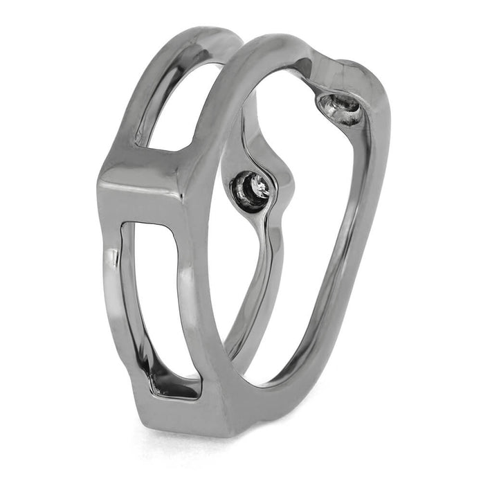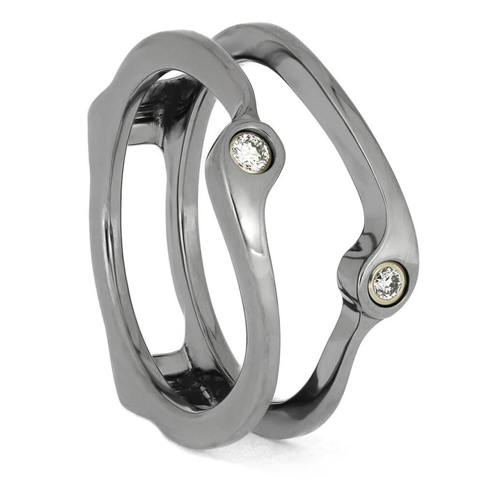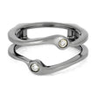 This beautiful diamond ring guard or shadow band in titanium is the perfect choice for those looking for an elegant and unique accessory. Crafted in titanium with bezel-set diamonds, this handmade piece makes a bold statement.
