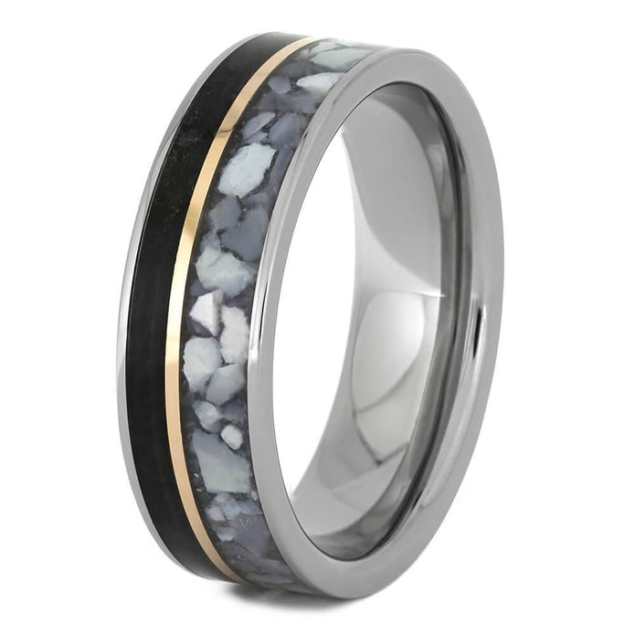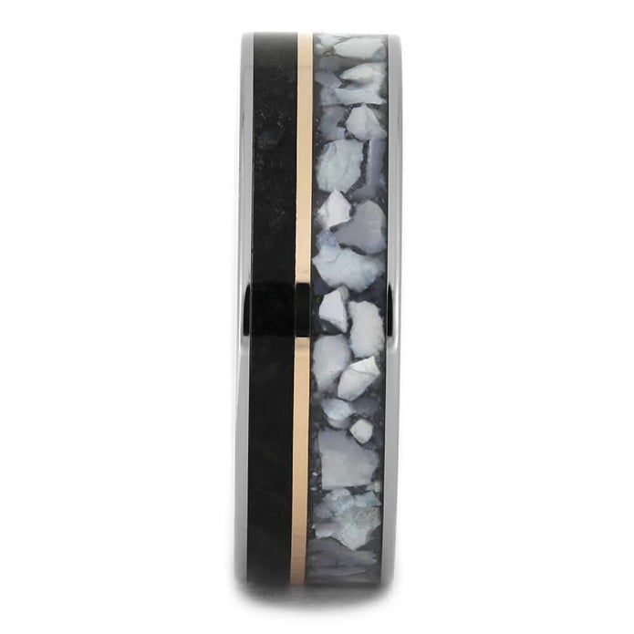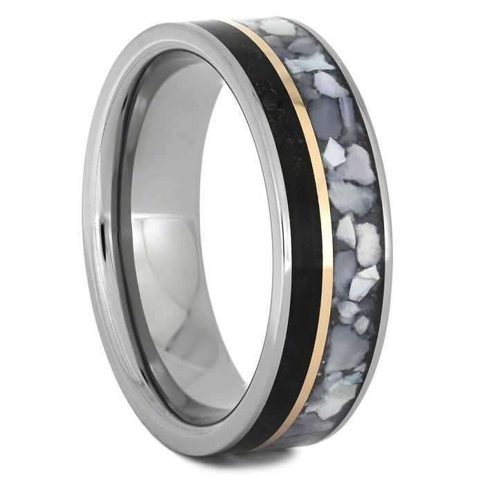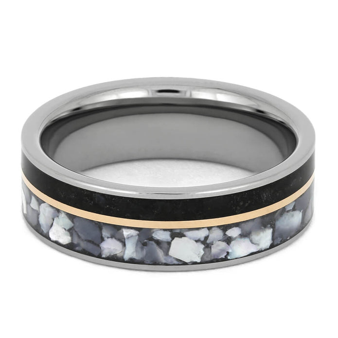 Materials in Dinosaur Bone Wedding Band with Mother of Pearl and Gold
