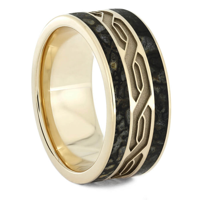 Materials in Dinosaur Bone Wedding Band with Celtic Pattern