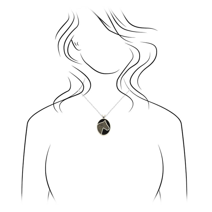 This horse pendant is a way to remember your pet. This pet memorial necklace features a ash inlay inside of a horse-shaped frame. An ironwood inlay surrounds the outside of the horse. Bring in the ashes of your beloved pet and we will carefully inlay it into your very own personalized sterling silver pendant.
