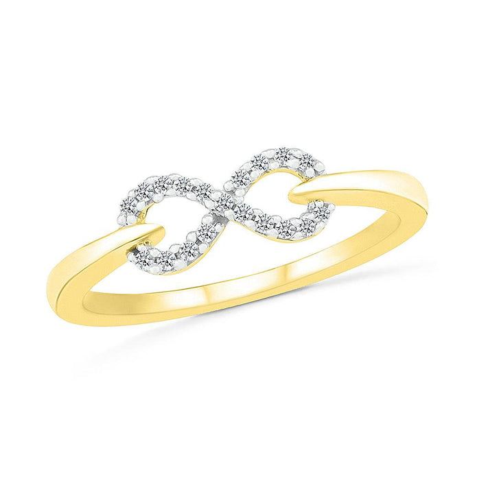 This stunning ring features a modern twiston the classic infinity symbol design. Show her just how endless your love is with this diamond infinity ring. A perfect gift for a birthday, anniversary or just because you want to show them your love is endless.