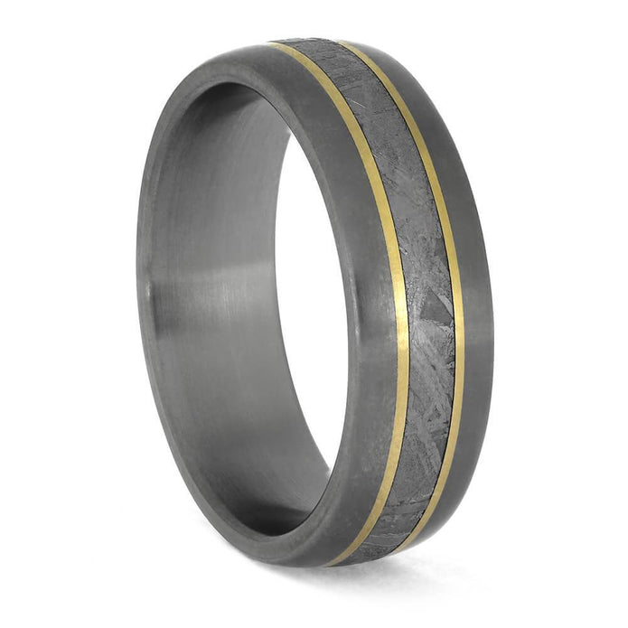 Men's Meteorite Ring with Yellow Gold Pinstripes